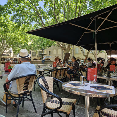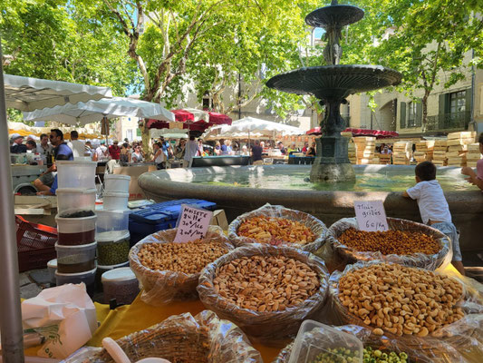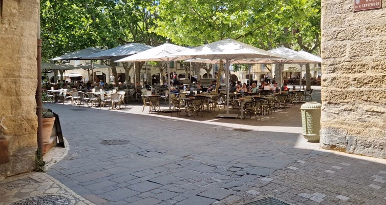 Immer wieder schön, Uzès, mit seinem schönen Angebot an besonderen Läden, den autofreien Gassen, Straßencafés, dem beeindruckenden Place aux Herbes mit seinen Arkadengängen sowie den Märkten am Mittwoch- und Samstagvormittag
