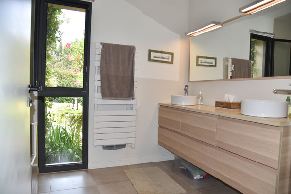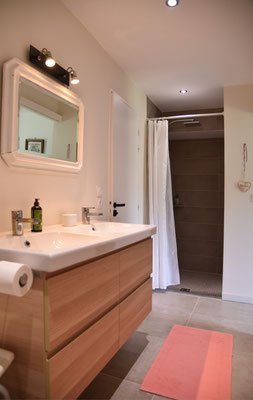 Wer im Büro mit Schlafcouch schläft, teilt sich das zweite Bad mit den Bewohnern des zweiten Schlafzimmers.
